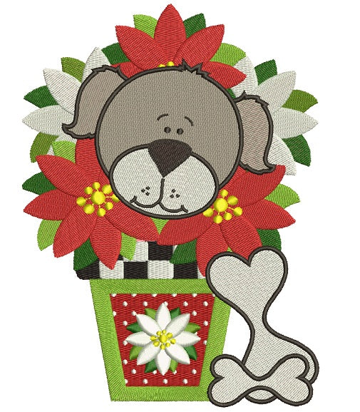 Cute Christmas Dog With Candy Cane Applique Mac...