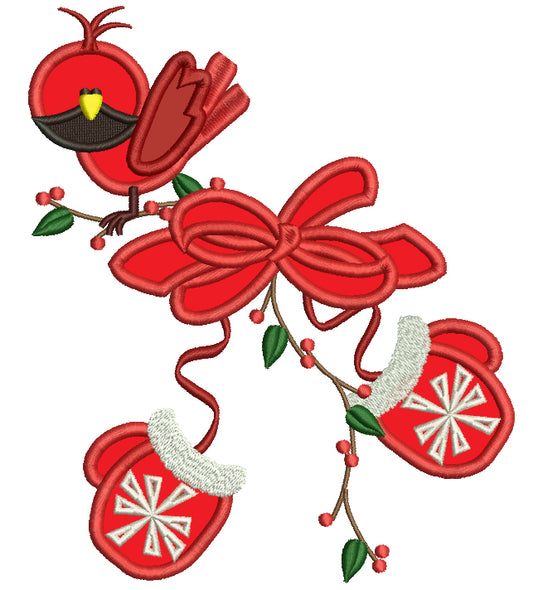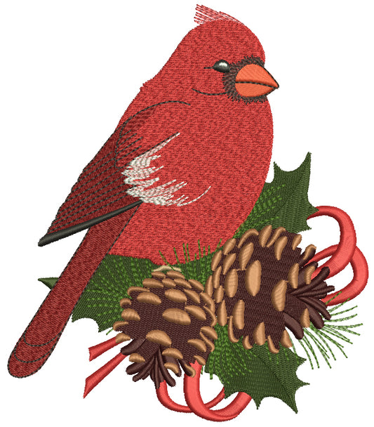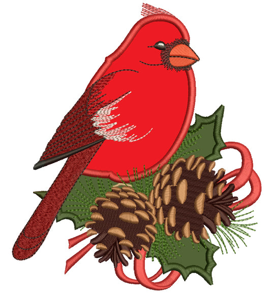 Christmas Cardinal Bird With Hollyberry Appliqu...