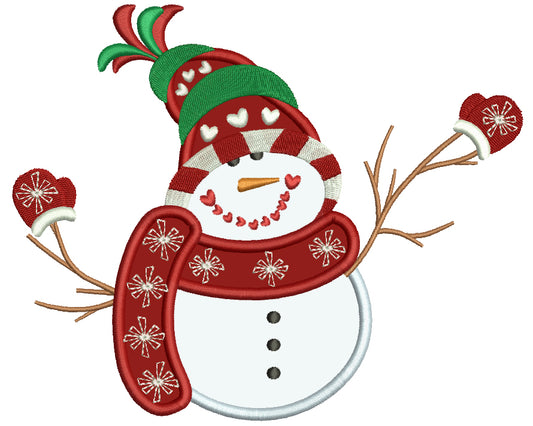 Snowman With Warm Scarf Wearing Snow Mittens Ch...