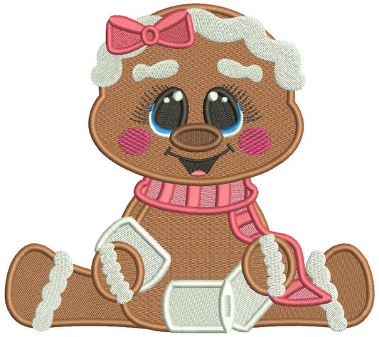 Cute Little Gingerbread Girl Playing With Snow ...