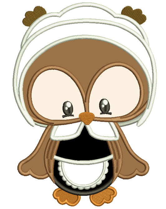 Cute Little Pilgrim Owl Thanksgiving Applique M...