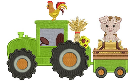 Tractor With a Piggy And Rooster Fall Filled Th...