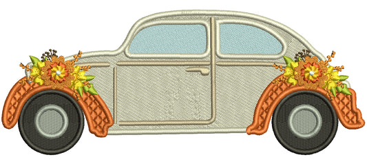 Volkswagen Beetle With Fall Flowers Filled Mach...