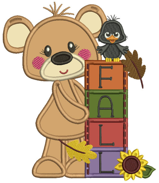 Fall Cute Bear With a Crow Applique Machine Emb...