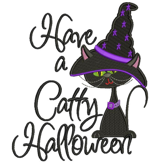 Have a Catty Halloween Black Cat Wearing Witch'...
