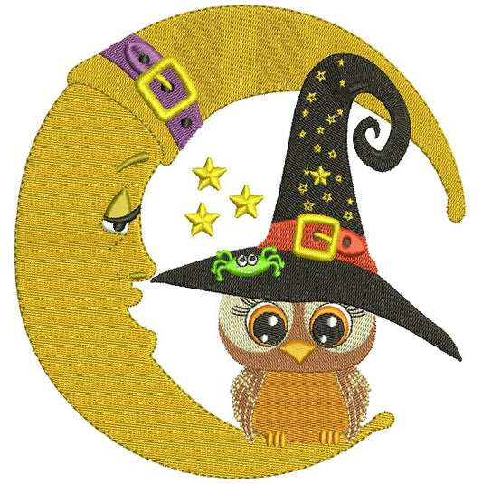 Owl Wearing Witch Hat Sitting On The Moon Hallo...