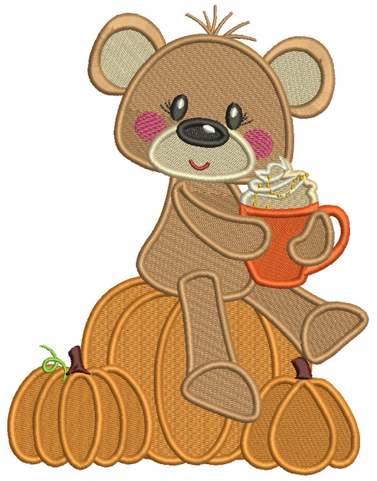 Bear Sitting On The Pumpkin Drinking Coco Hallo...