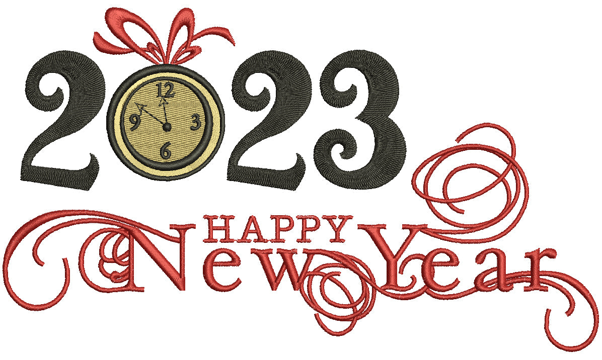 2023 Happy New Year Clock Strikes Twelve Filled Machine Embroidery Design Digitized Pattern