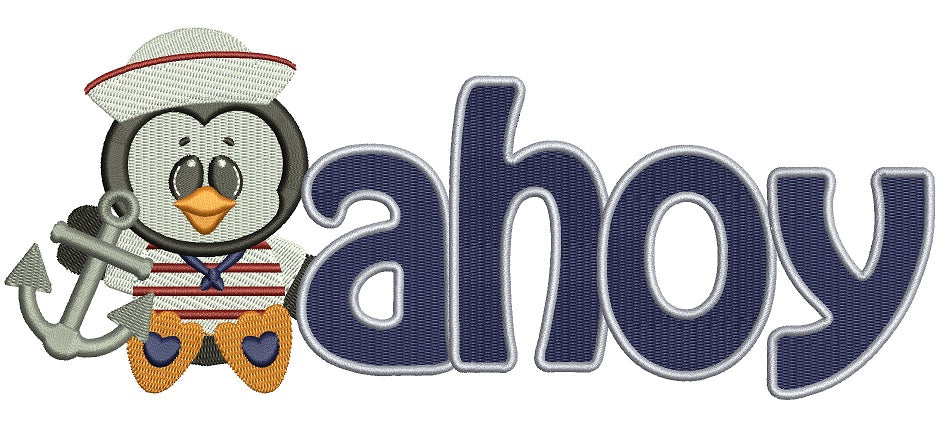 Ahoy Marine Anchor Penguin Filled Machine Embroidery Digitized Design Pattern