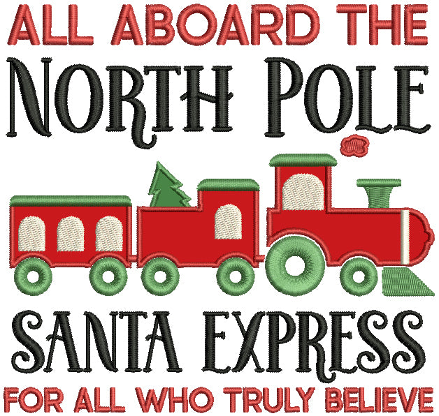 All Aboard The North Pole Santa Express For All Who Truly Believe Christmas Applique Machine Embroidery Design Digitized Pattern