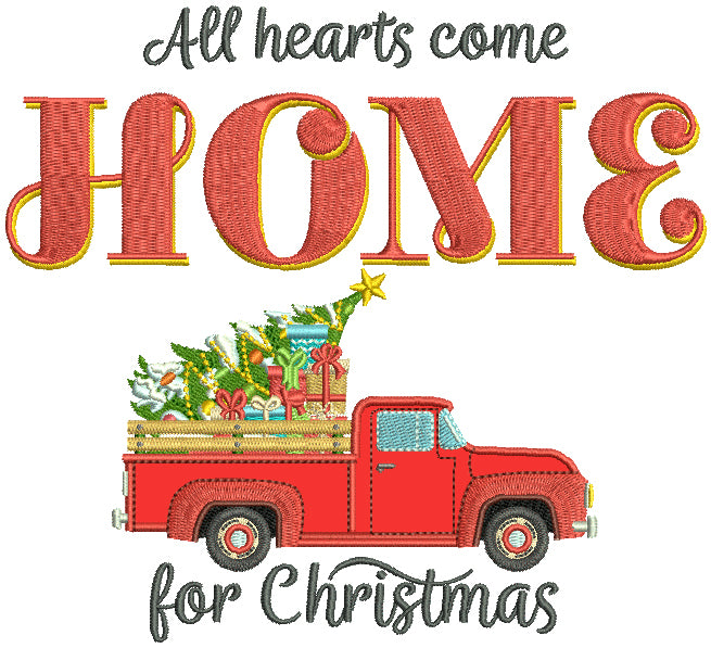 All Hearts Come Home For Christmas Applique Machine Embroidery Design Digitized Pattern