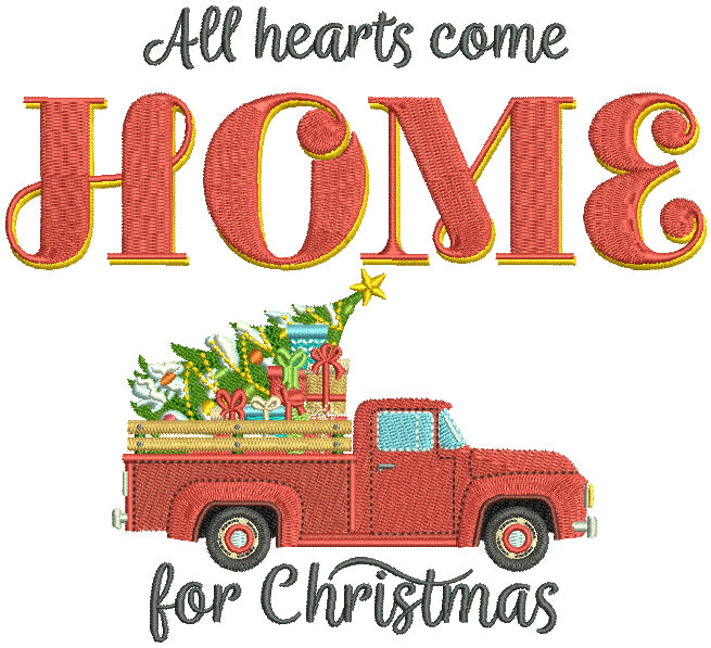 All Hearts Come Home For Christmas Filled Machine Embroidery Design Digitized Pattern