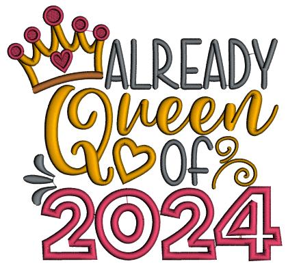 Already Queen Of 2024 New Year Applique Machine Embroidery Design Digitized Pattern
