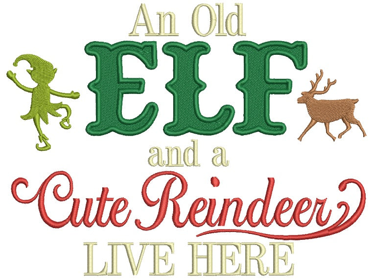 An Old Elf and a Cute Reindeer Live Here Christmas Filled Machine Embroidery Digitized Design Pattern