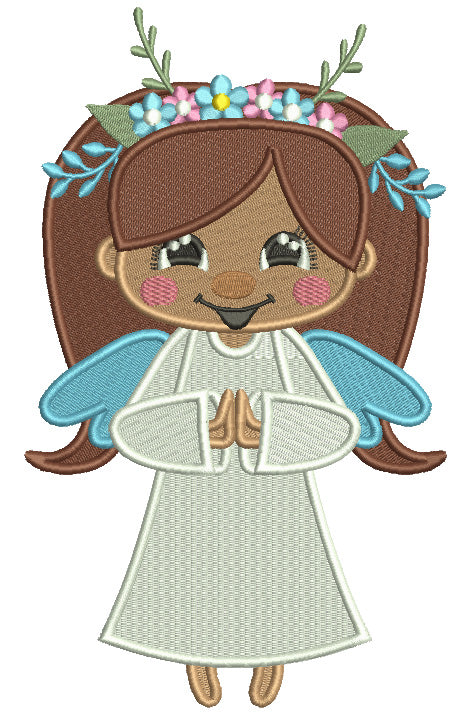 Angel Girl With Flowers Christmas Filled Machine Embroidery Design Digitized Pattern
