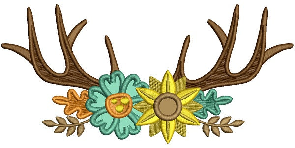 Antlers With Flowers Applique Machine Embroidery Design Digitized Pattern