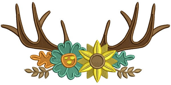 Antlers With Flowers Filled Machine Embroidery Design Digitized Pattern