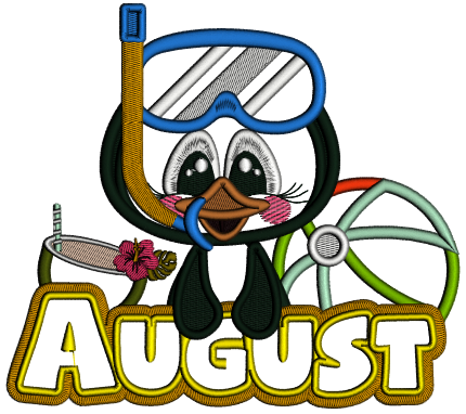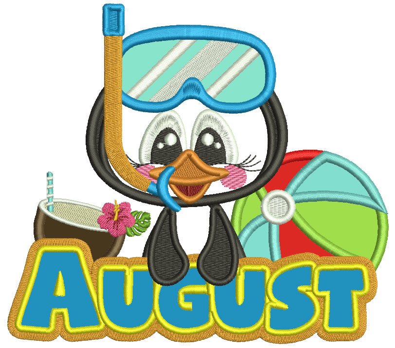 August Penguin With a Beach Ball Applique Machine Embroidery Design Digitized Pattern