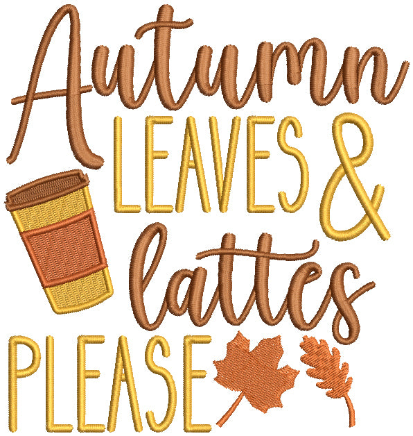 Autumn Leaves And Lattes Please Fall Filled Machine Embroidery Design Digitized Pattern