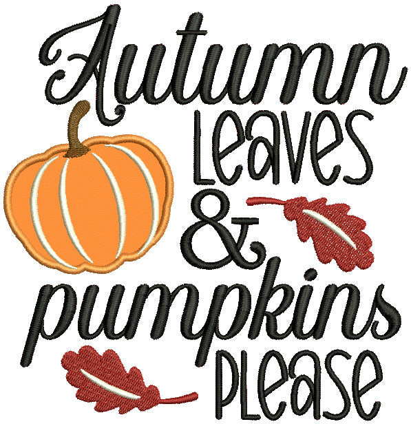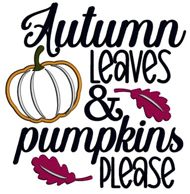 Autumn Leaves And Pumpkin Please Fall Applique Machine Embroidery Design Digitized Pattern