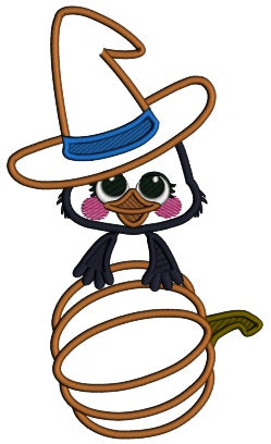 Baby Crow With Big Hat Holding Pumpkin Fall Thanksgiving Applique Machine Embroidery Design Digitized Pattern