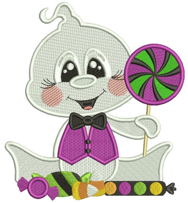 Baby Ghost Holding Candy Halloween Filled Machine Embroidery Design Digitized Pattern