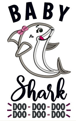 Baby Girl Shark Doo Doo Children Rhimes Applique Machine Embroidery Design Digitized Pattern