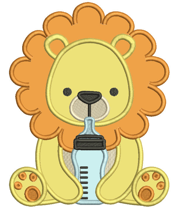 Baby Lion With Milk Bottle Applique Machine Embroidery Design Digitized Pattern