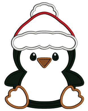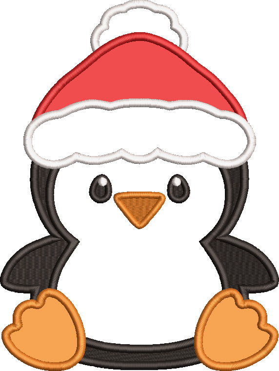 Baby Penguin Wearing Santa Hat Christmas Applique Machine Embroidery Design Digitized Pattern