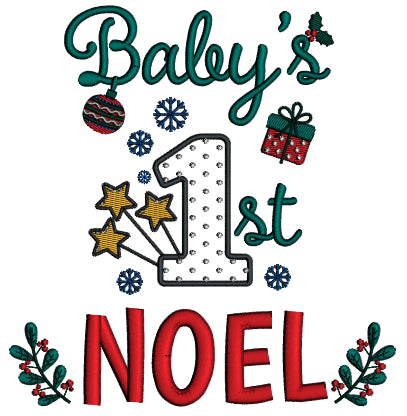 Baby's 1st NOEL Birthday Christmas Applique Machine Embroidery Design Digitized Pattern