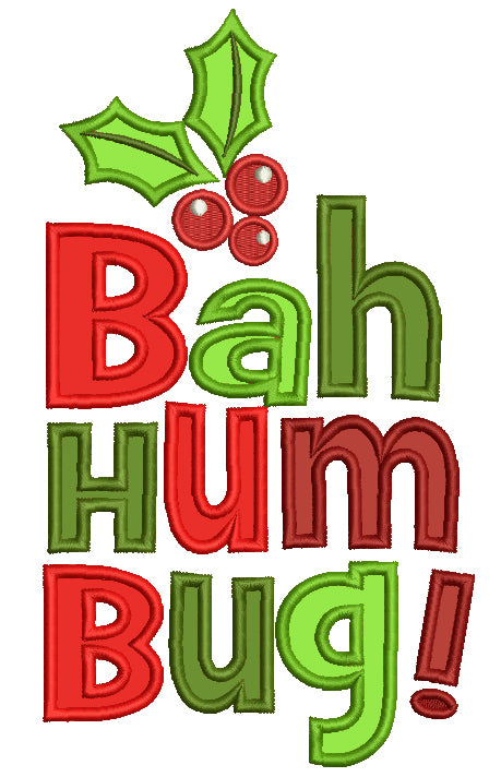 Bah Hum Bug Christmas Applique Machine Embroidery Digitized Design Pattern