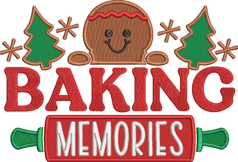 Baking Memories Gingerbread Man And Trees Christmas Filled Machine Embroidery Design Digitized Pattern