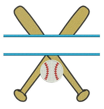 Baseball Bats Split Crossed with a baseball Design Machine Embroidery Digitized Filled Pattern - Instant Download - 4x4 , 5x7, 6x10