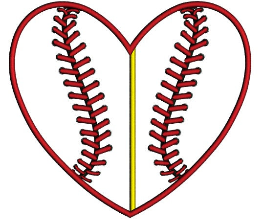 Baseball Heart Divided by line Applique Machine Embroidery Digitized Design Pattern