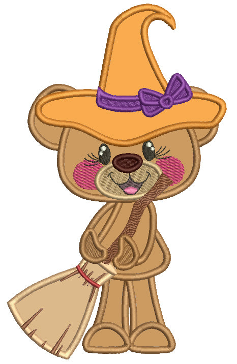 Bear Witch With a Broom Halloween Applique Machine Embroidery Design Digitized Pattern