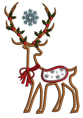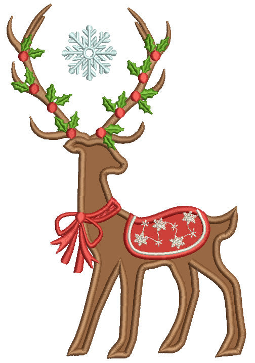 Beautiful Reindeer With a Snowflake Saddle Christmas Applique Machine Embroidery Design Digitized Pattern