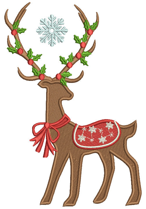 Beautiful Reindeer With a Snowflake Saddle Christmas Filled Machine Embroidery Design Digitized Pattern