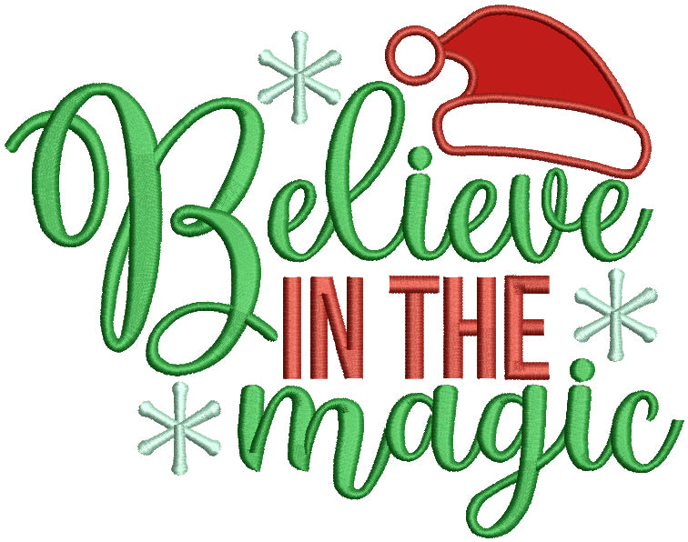 Believe In Magic Santa Hat Christmas Applique Machine Embroidery Design Digitized Pattern