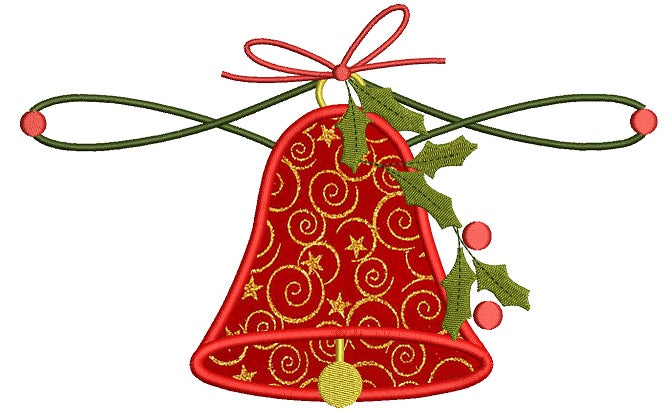 Big Jingle Bell Christmas Applique Machine Embroidery Design Digitized Pattern
