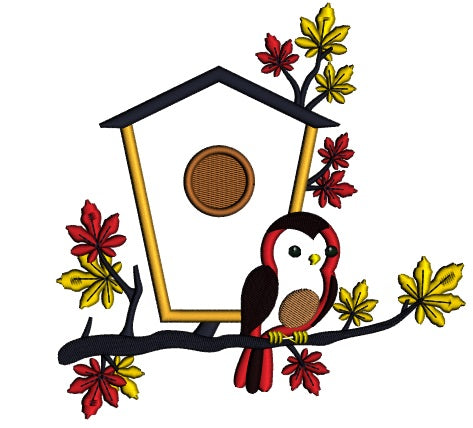 Bird House and a Bird Fall Applique Machine Embroidery Design Digitized Pattern