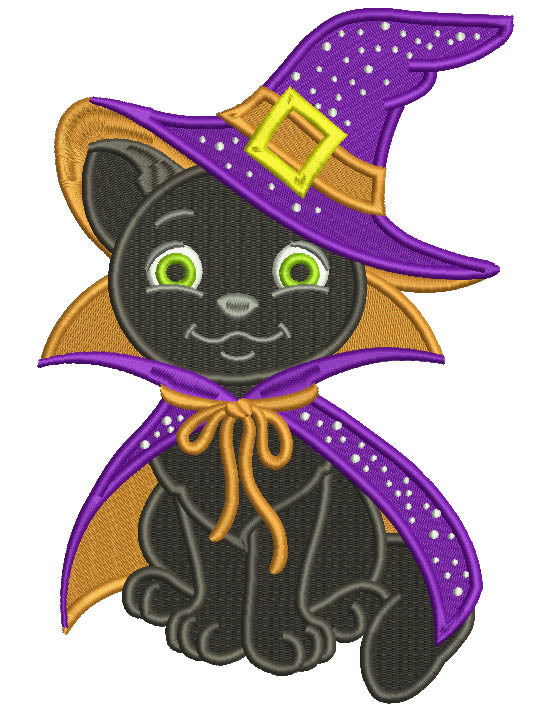 Black Cat Wearing Witch Costume Halloween Filled Machine Embroidery Design Digitized Pattern
