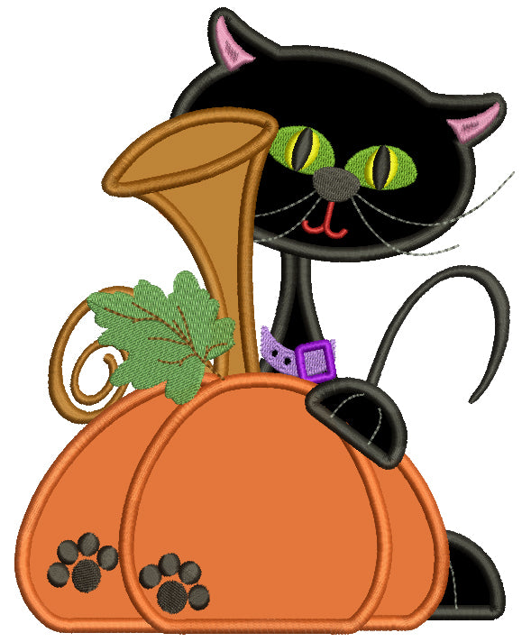 Black Hat Holding a Large Pumpkin Halloween Applique Machine Embroidery Digitized Design Pattern
