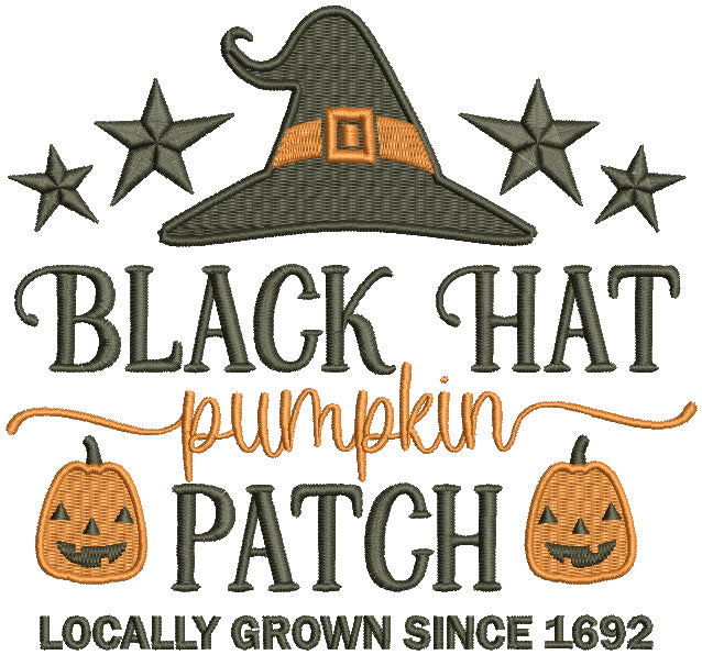 Black Hat Pumpkin Patch Locally Grown Since 1692 Halloween Filled Machine Embroidery Design Digitized Pattern