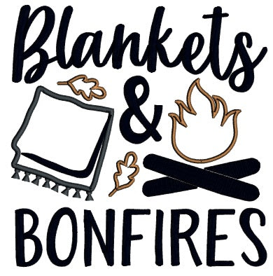Blankets And Bonfire Camping Applique Machine Embroidery Design Digitized Pattern