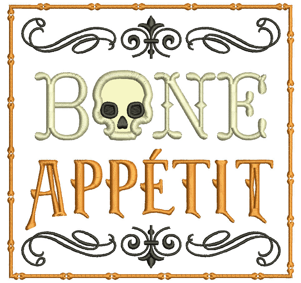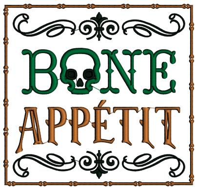Bone Appétit Skull Halloween Applique Machine Embroidery Design Digitized Pattern