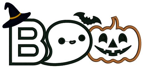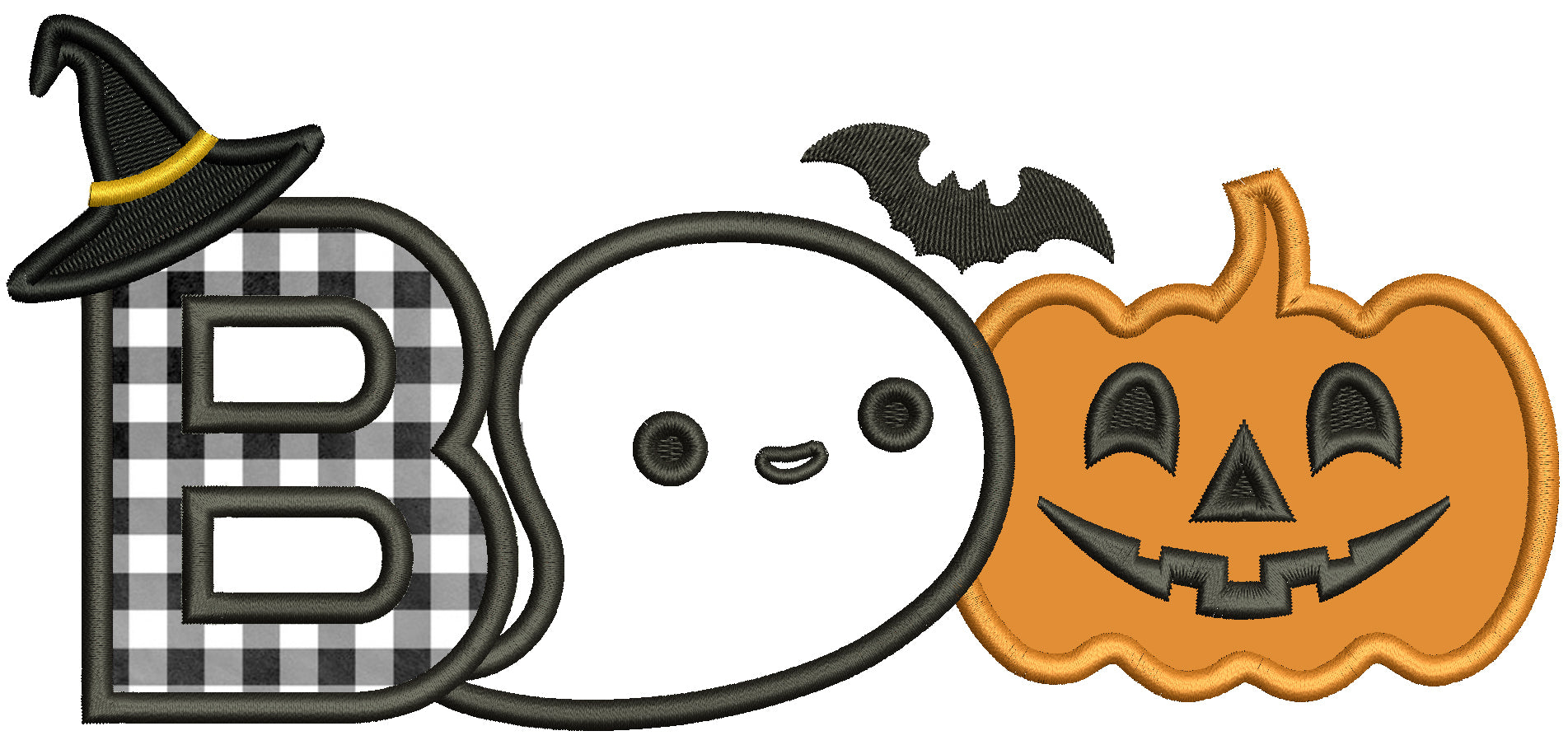 BOO Ghost and Pumpkin Halloween Applique Machine Embroidery Design Digitized Pattern