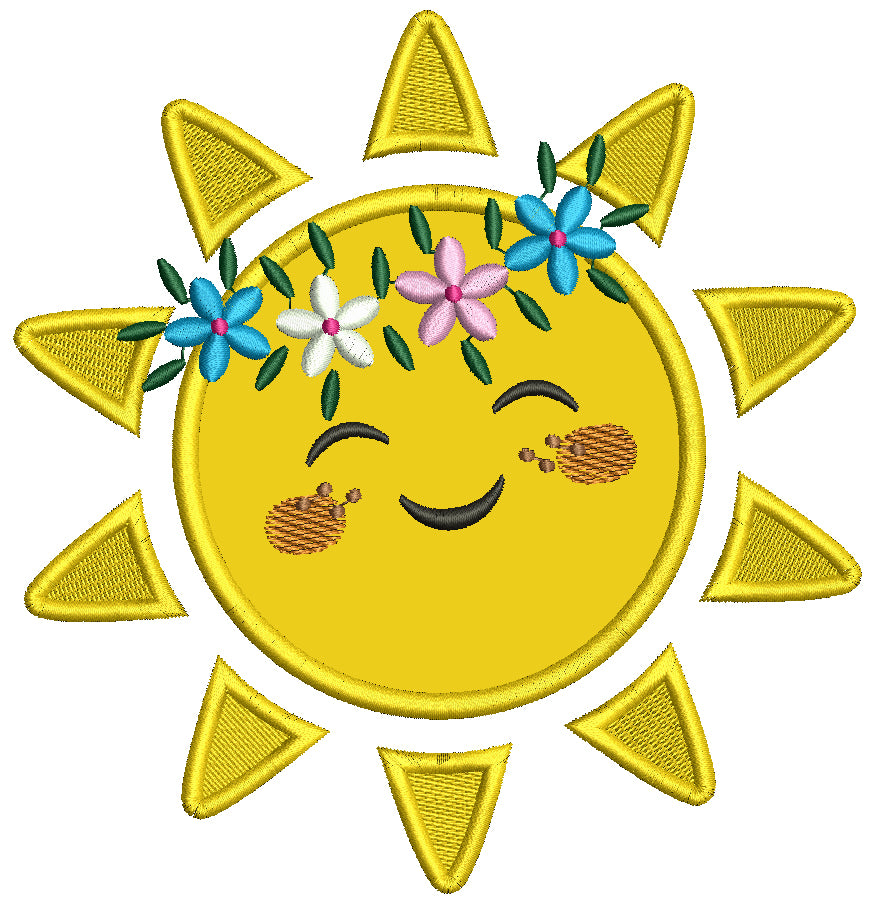 Bright Sun With Flowers Summer Applique Machine Embroidery Design Digitized Pattern