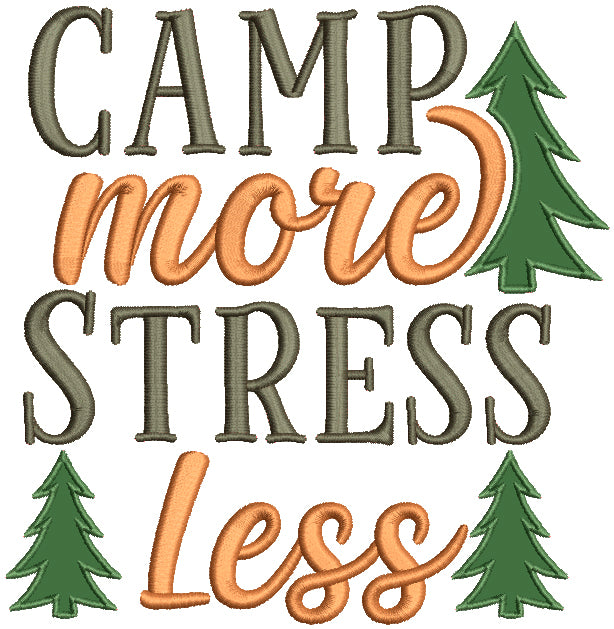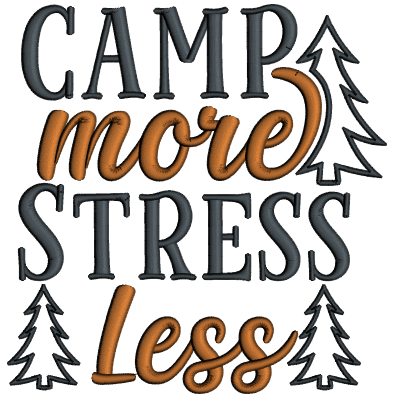 Camp More Stress Less Applique Machine Embroidery Design Digitized Pattern