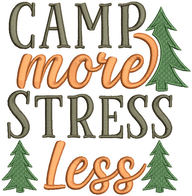 Camp More Stress Less Filled Machine Embroidery Design Digitized Pattern