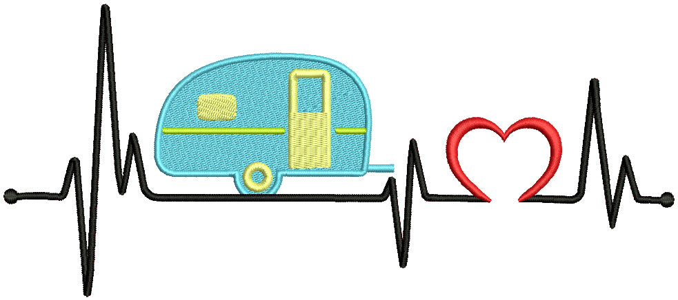 Camper Heartbeat Love Filled Machine Embroidery Design Digitized Pattern